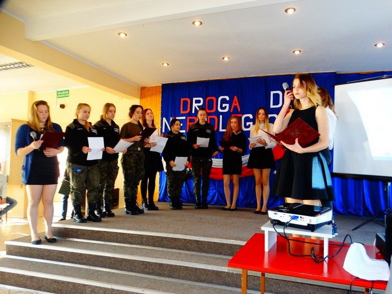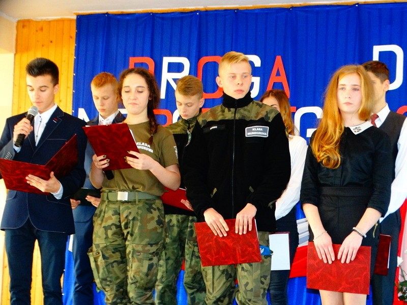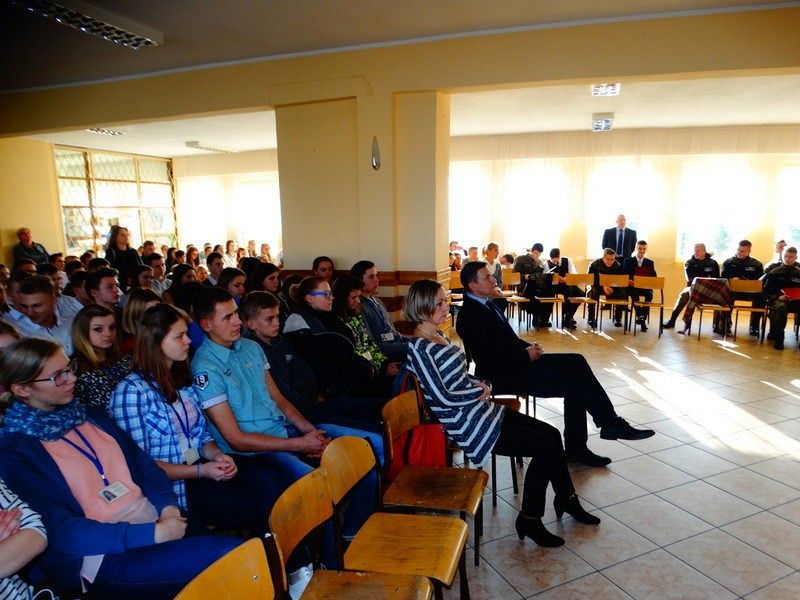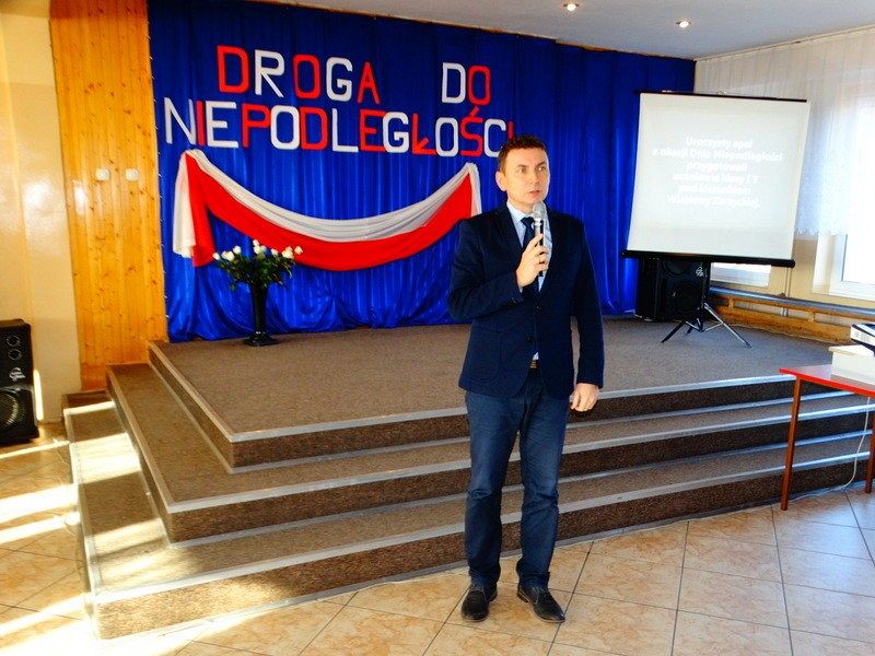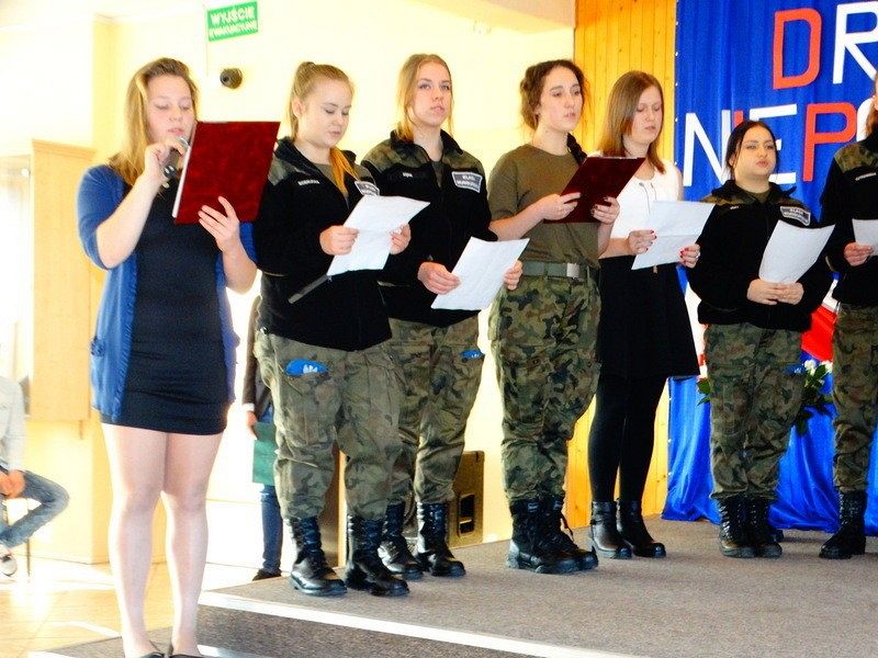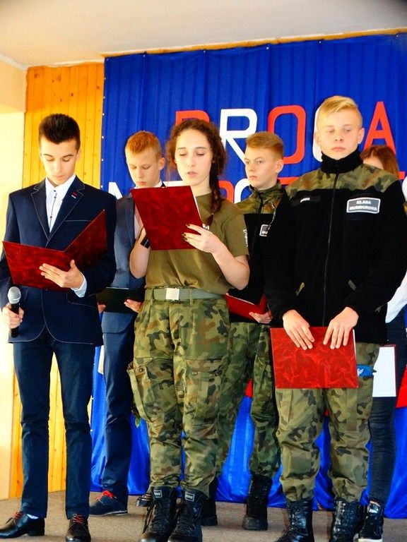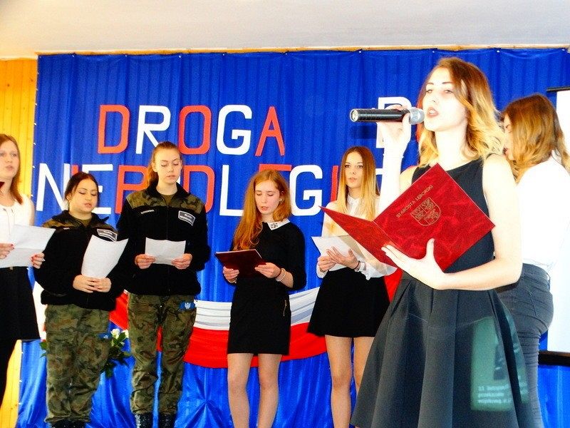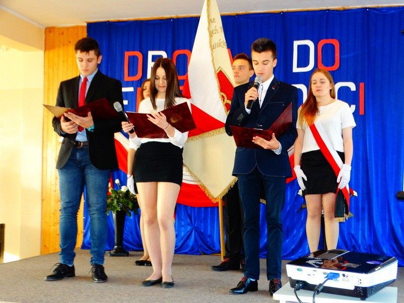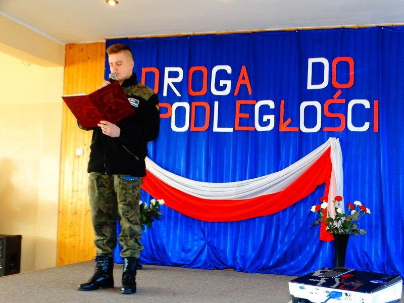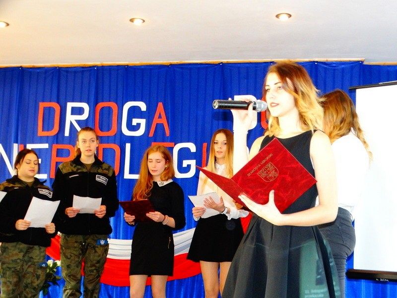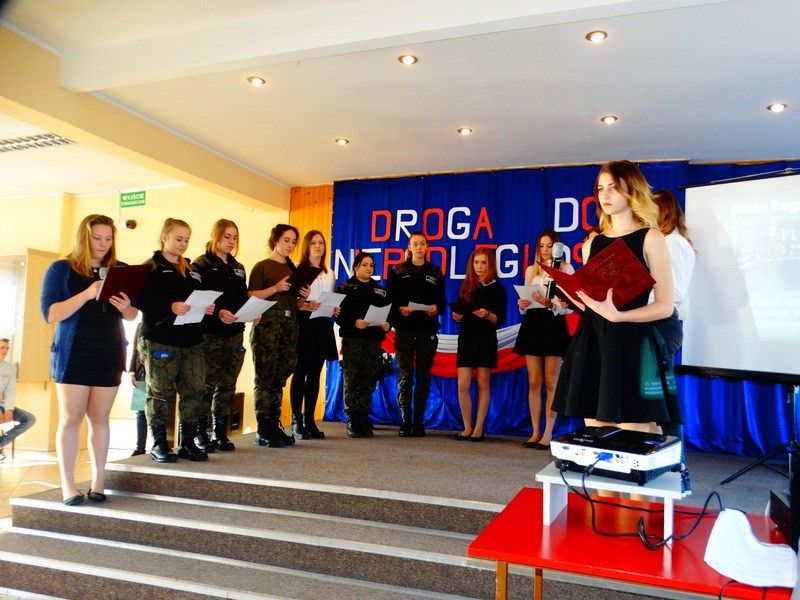 Dnia 10.11.2016 r klasa IT pod kierunkiem Wiesławy Zarzyckiej przygotowała uroczysty apel z okazji Dnia Niepodległości. Tematem przewodnim przygotowanej prezentacji multimedialnej była DROGA DO WOLNOSCI. Obserwatorami apelu byli głównie uczniowie wszystkich klas pierwszych. Apel rozpoczął się odśpiewaniem wszystkich czterech zwrotek hymnu państwowego, były wiersze i piosenki :Wojenko, wojenko..." oraz "Rozkwitały pąki białych róż" w wykonaniu utalentowanych uczennic tej klasy, ze szczególnym uwzględnieniem takich uczennic jak Karolina Wrońska oraz Angelika Zakrzewska. Podkład muzyczny stanowiła etiuda e-moll op.72 Chopina .Apel przygotowano z wykorzystaniem materiałów bibliotecznych oraz zasobów internetowych.Dekorację wykonali uczniowie: Anna Reszka oraz Marcin Gruba a także Daria Heft,za sprzęt odpowiedzialny był Kacper Kępa ,którego wspomagali uczeniowie starszej klasy Maksymilian Lawrenc i Michał Jabłoński.