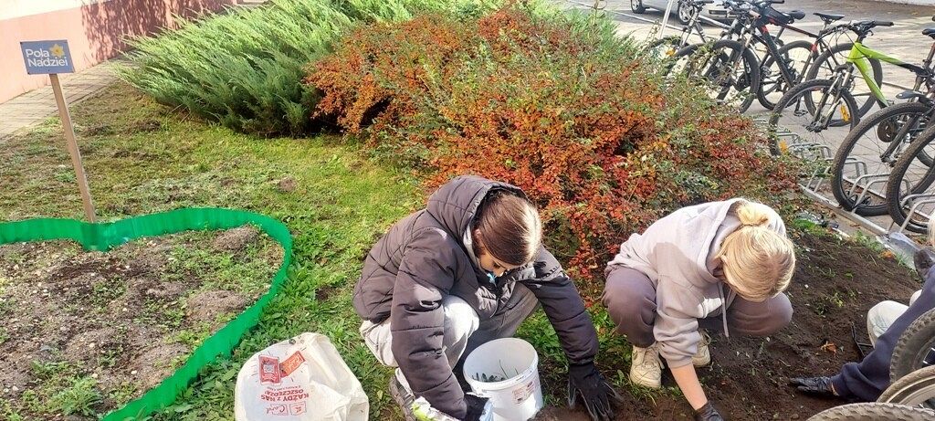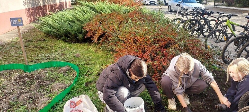 W ubiegłym jak i w bieżącym roku szkolnym przed budynkiem naszej szkoły posadziliśmy z uczniami cebulki żonkili, które otrzymaliśmy od Fundacji Lęborskiego Hospicjum Stacjonarnego. Nasza grządka jak i serce żonkilowe jest symbolem nadziei dla ludzi chorych i cierpiących.Wiosną nasza grządka i serce żonkilowe zakwitnie i powstanie w naszej szkole pole nadziei.