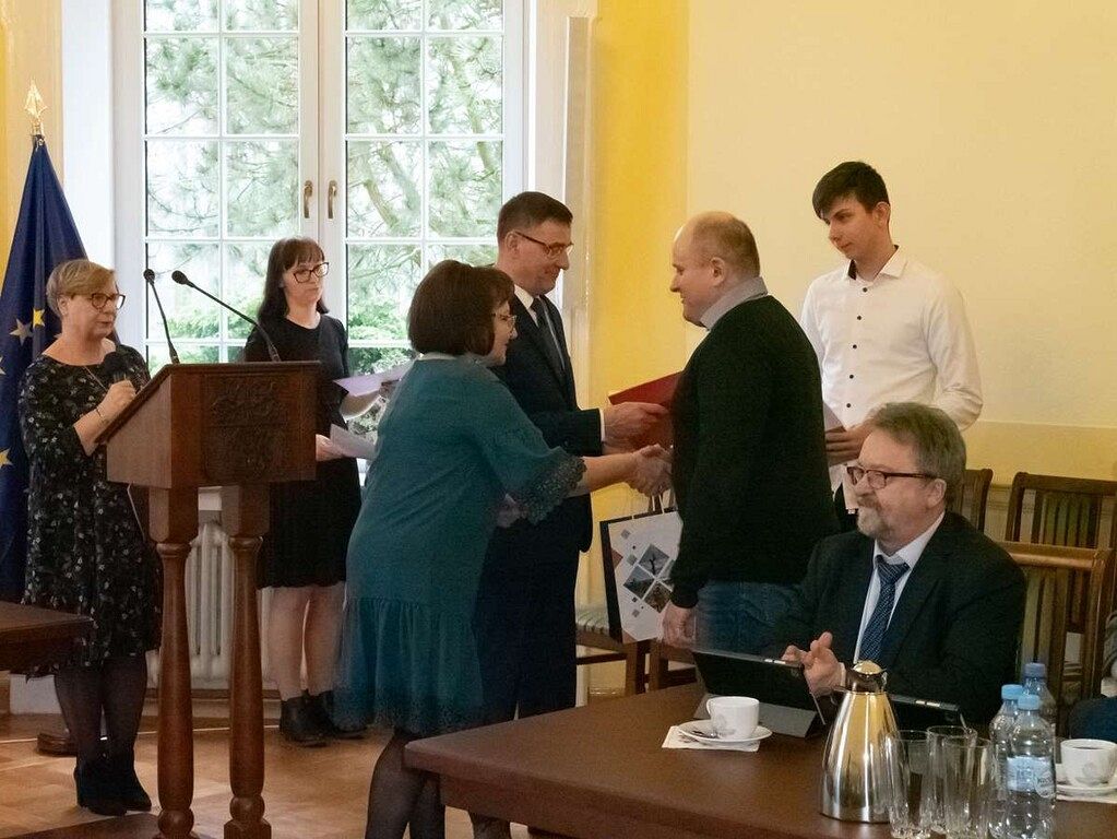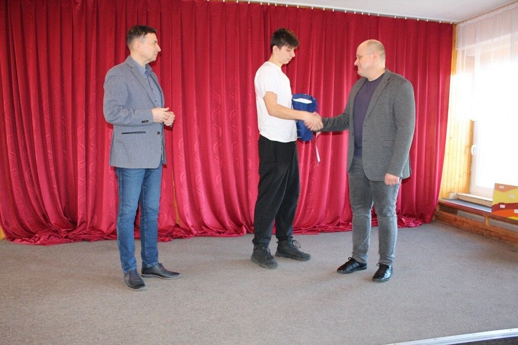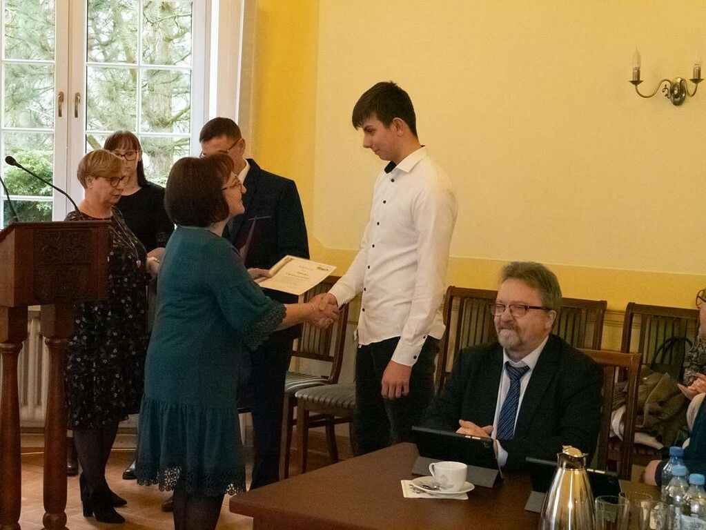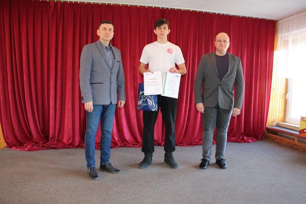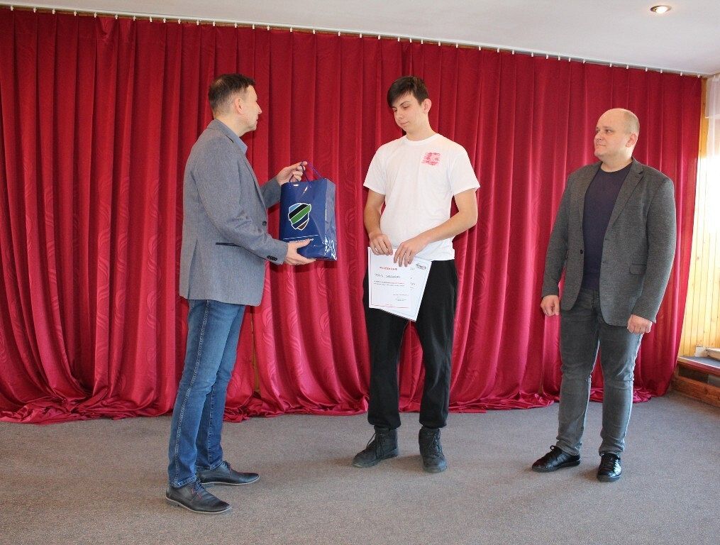 22.03.2024 r. Patryk odebrał dyplom i nagrodę za zajęcie I miejsca w omawianej rywalizacji z rąk Starosty Lęborskiego - Alicji Zajączkowskiej i Przewodniczącego Rady Powiatu Lęborskiego - Mirosława Tandka.