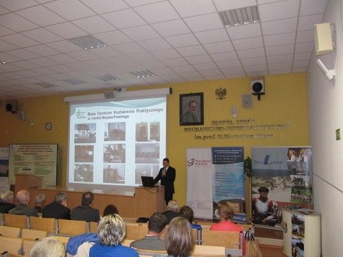Dnia - 11 października 2013 - odbyła się w ZSMI konferencja w trakcie, której wykładowcy przedstawiali strategie dotyczące przyszłości szkolnictwa. Ważnym zagadnieniem poruszonym podczas spotkania było dostosowanie nowoczesnej szkoły do rynku pracy. W związku z tym głos zabrała m.in. p. Elżbieta Rabenda ze Starostwa Powiatowego w Lęborku, a także dyrektor PCE, ZSP- p. A. Obolewski. Natomiast przedstawiciele PUP i prywatnych firm ukazali zawody poszukiwane przez przyszłych pracodawców. Podkreślano też , że ważnym argumentem dla tworzenia nowych profili w szkołach ponadgimnazjalnych były zawsze potrzeby kształcenia specjalistów z określonych dziedzin wiedzy. W związku z tym warto dodać , że pan A. Obolewski przedstawiając strategię działań w PCE, ZSP przypomniał w swoim wystąpieniu, że kluczem dla tworzenia nowych klas były głównie sondaże rynku pracy, które idealnie się uzupełniają z tym co proponuje jego placówka i PUP.