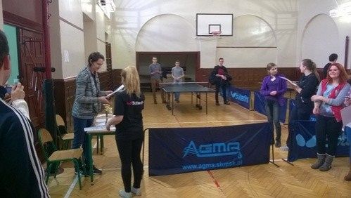 22.01.2014r w ramach XVI Powiatowych Igrzysk Młodzieży Szkolnej, odbył się turniej tenisa stołowego dziewcząt. Nasze reprezentantki w składzie: Kinga Nagórska z klasy 2A i Justyna Mach z klasy ITLb okazały się najlepsze, wygrywając bezkonkurencyjne z trzema szkołami naszego powiatu. Przegrały jedynie z dziewczętami z II liceum Ogólnokształcącego wynikiem 3:1. Jednak w klasyfikacji końcowej uzyskały największą liczbę punktów, co dało im mistrzostwo oraz prawo do reprezentowania powiatu lęborskiego w półfinałach wojewódzkich w Kartuzach. Gratulujemy naszym mistrzyniom i życzymy dobrej passy na kolejnym etapie rozgrywek.