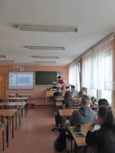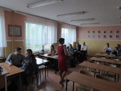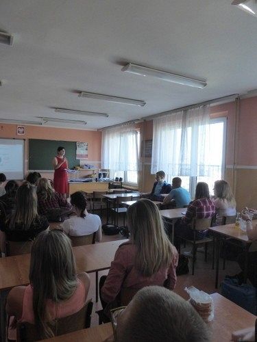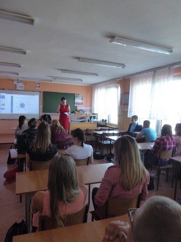 Do szkoły zaproszono doradcę zawodowego Poradni Psychologiczno – Pedagogicznej w Lęborku Panią Bożenę Murawską, która przeprowadziła zajęcia z młodzieżą na temat handlu ludźmi. W zajęciach uczestniczyli uczniowie następujących klas: III a, III A, III B, II TLa, II TLb, III TLb. W czerwcu odbędą się kolejne spotkania dla pozostałych klas.