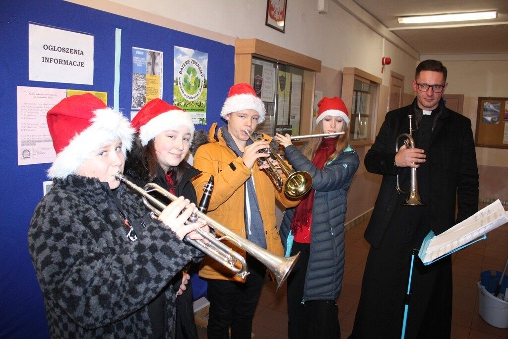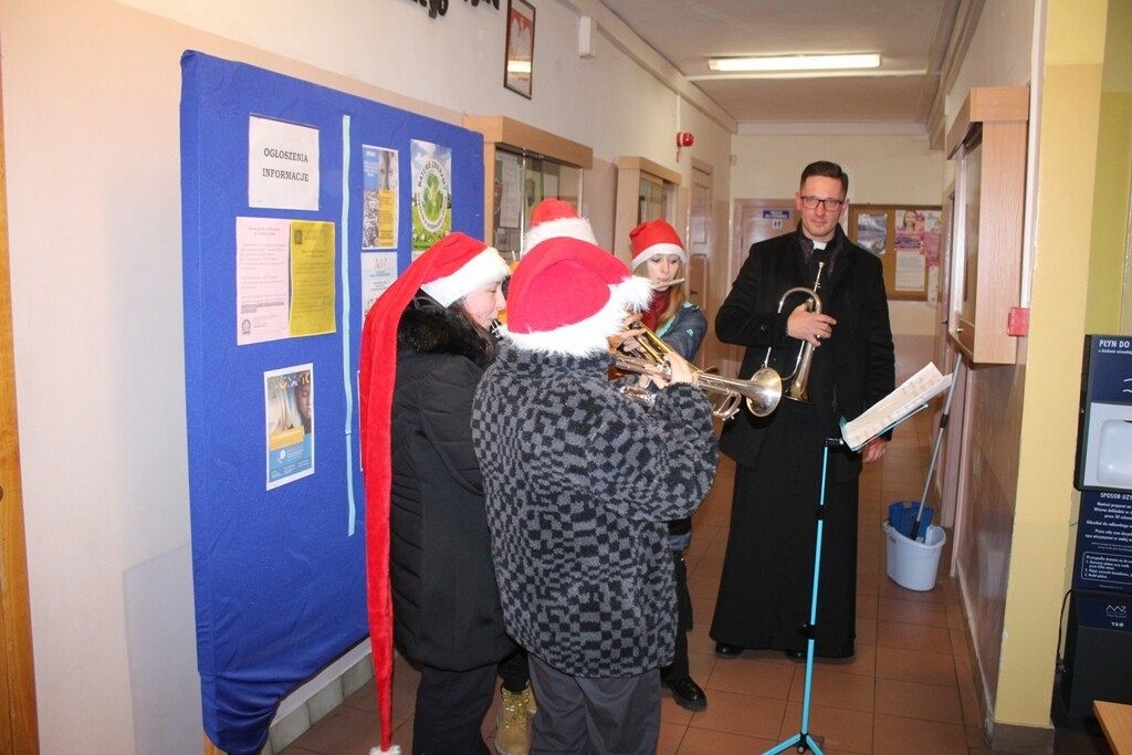 W dniu - 6.12.2022 roku – Święty Mikołaj odwiedził uczniów i pracowników Powiatowego Centrum Edukacyjnego w Lęborku. Podczas wspólnego muzykowania i rozdawania słodkich upominków potwierdził ideę niesienia pomocy, przynoszenia prezentów oraz wzajemnego pomagania najbiedniejszym. Ten katolicki zwyczaj sprawił, że młodzi muzykanci urozmaicili przerwę w naszej szkole, a także przybliżyli atmosferę zbliżających się świąt.