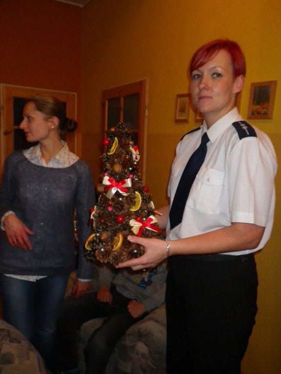 W ramach podziękowania młodzież wręczyła pani Magdzie wykonaną własnoręcznie choinkę.