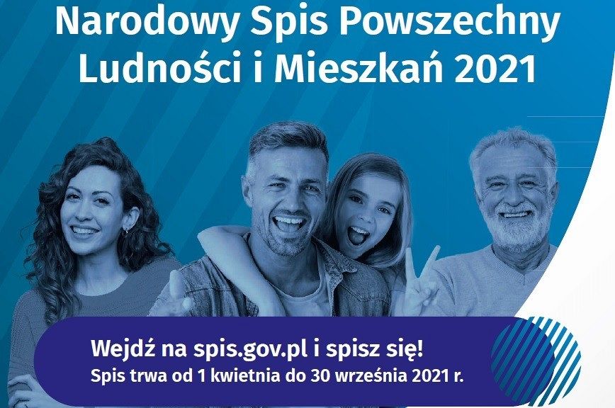 Od 1 kwietnia 2021 r. do 30 września 2021 r. trwa NARODOWY POWSZECHNY SPIS LUDNOŚCI I MIESZKAŃ. Każdy z nas ma ustawowy obowiązek dokonania spisu.
