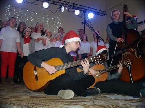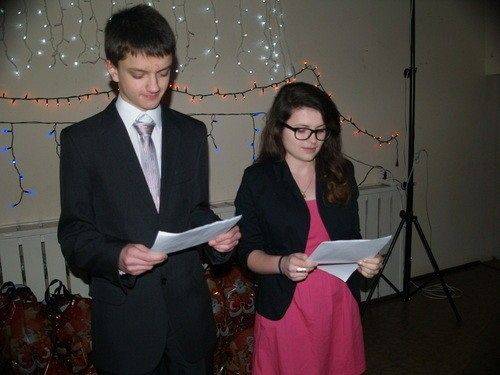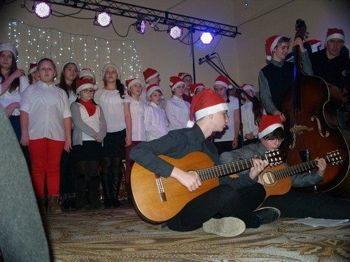 W programie uroczystego spotkania zaproszeni Goście mogli wysłuchać montażu słowno - muzycznego w ramach, którego wystąpili kolejno: uczniowie z kółka dziennikarskiego p. Sylwii Skroś – Laptopowcy z PCE, ZSP, chór Państwowej Szkoły Muzycznej I stopnia w Lęborku, z repertuarem kolęd, które wprawiały wszystkich zgromadzonych w odświętny nastrój i zaproszeni goście, którzy przepięknie wykonali kolędy – Klaudia Juchniewicz i p. Wiesław Mielewczyk. Dla Gości przygotowano także poczęstunek składający się z tradycyjnych wigilijnych potraw oraz słodyczy. Ciasteczka przygotowała według tradycyjnych przepisów młodzież, pod kierunkiem p. Jolanty Kozłowskiej, opiekunki koła gastronomicznego, w pracowni PCE. Niemałą atrakcją dla najmłodszych uczestników spotkania był prawdziwy Mikołaj, który wszystkim dzieciom z rodzin zastępczych wręczył paczki ze słodyczami. Świąteczna, rodzinna atmosfera towarzyszyła całemu spotkaniu, a radość gości - dzieci i ich rodziców, którzy mogli uczestniczyć w tej uroczystości na długo pozostanie w naszej pamięci.