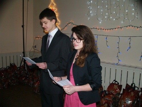 Dzieci z rodzin zastępczych: Kochana Mamo- kto wstaje wcześnie codziennie rano? Drogi Tatusiu – czy to prawda, że szykujesz choinkę w grudniu? My jako dzieci z rodzin zastępczych, jesteśmy z Wami w GOK-u, aby dotrzymać Wam wszystkim kroku. A dziewczyna z zapałkami, przypomina wieczorami, że bardzo Was kochamy – tak oto powiedziały zgodnie dzieci, gdy poczuły, że renifer z nieba leci. To na paczki bardzo czekamy, dlatego na listy znaczki naklejamy.”