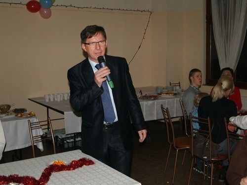 Pan Wenta przywitał, w imieniu władz powiatu, wszystkie zaproszone rodziny zastępcze i podzielił się osobistymi refleksjami na temat wartości, które są ważne w życiu każdego człowieka. Zwrócił też uwagę zebranych, na rolę przepięknych więzi małżeńskich, które są cennym fundamentem rodziny i podstawą wychowania dzieci. Pan Korda wygłosił przemowę na temat sensu obchodzenia świąt Bożonarodzeniowych w rodzinnym gronie.