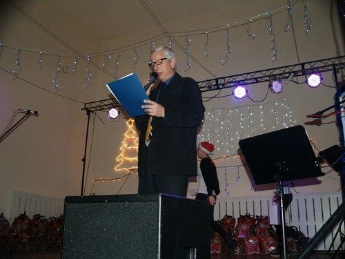 „Drogi powiatu, wiodą nas do kwiatów, którymi są rodziny Zastępcze, a potwierdza to wszystko matczyne, oddane serce. I chyba nie trzeba nic więcej ,jak uścisk dłoni, gdy dziecko do kogoś się ukłoni, a na naszej twarzy radość się zjawi. To właśnie wigilijne spotkanie rodzinne powinno być wszystkiemu winne, że tego jednego dnia w roku , Vipy i rodziny zastępcze powinny być wzajemnie wdzięczne – za pomoc i wielkie serce. Bo droga Mamo, kochany Tatusiu – Twoje dziecko jest, jak Gwizdka, która spadła z nieba dziewczynka z zapałkami daje jej opłatkowy kawałek chleba. Bo tylko jedna droga jest właściwa, to ta , która Was do siebie połączyła. Miłość Bożonarodzeniowa stanowi, bowiem – dar wielki, który w dniu dzisiejszym pozwolił Wam wszystkim ubrać się w odświętne sukienki i wskoczyć w eleganckie gajerki. Rodziny zastępcze oznaczają w Lęborku, że dziecko to największy skarb w całym świecie , i dobrze wiemy, że się z tym stwierdzeniem zgodzicie, gdyż poświęciliście dla niego swoje życie. I tylko jedna łza po policzkach spływa, gdy jest taka odświętna chwila, która Waszą miłość – słowami cudowności nazywa.