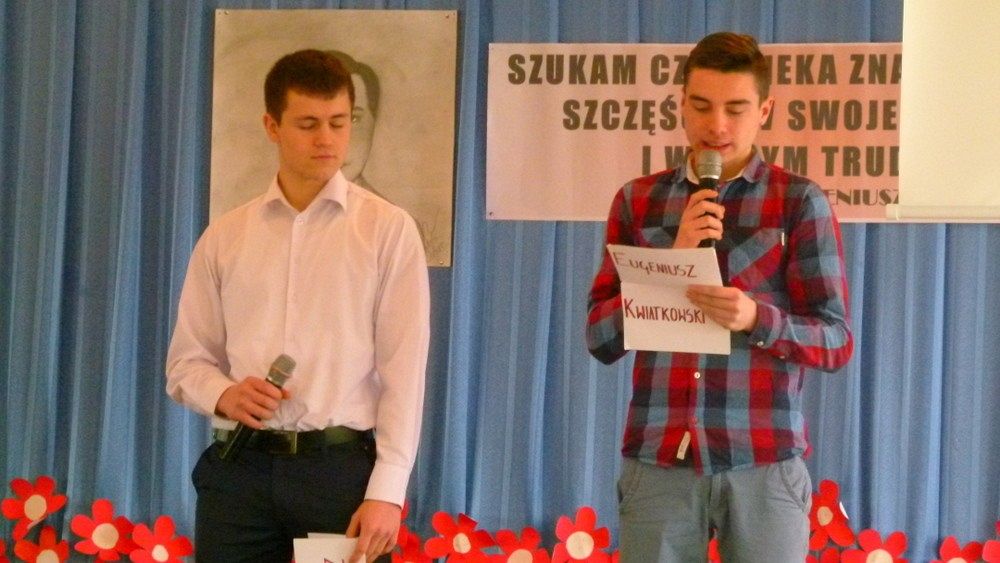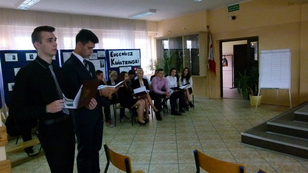 Apel skierowany był do klas pierwszych, które także uczestniczyły w quizie o życiu i działalności Eugeniusza Kwiatkowskiego.