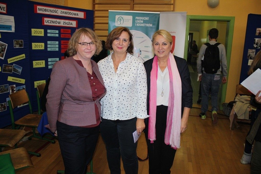 Podczas tegorocznych Targów Edukacyjnych PCE odwiedzają przedstawiciele lokalnych mediów oraz włodarze miasta i powiatu. Gościmy w murach naszej szkoły – Wicestarostę – Panią Elżbietę Godderis, która wypowiada się na temat takiej promocji regionu. Szkolnictwo średnie, przy organie prowadzącym, czyli Starostwie Powiatowym w Lęborku, odgrywa znacząca rolę edukacyjną, gdyż wpływa na decyzje życiowe wszystkich młodych ludzi. Opieka nad uczniami i baza lokalowa – to zadania, które w dobie XXI wieku zaliczamy do podstawowych form kształcenia młodzieży.