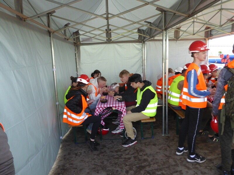 Na uczestników czwartkowego wyjazdu czekała smaczna grochówka przygotowana przez organizatora oraz konkurs. Po jego rozstrzygnięciu kilka osób w ramach nagrody miało okazję sprawdzić jak prowadzi się wozidło transportujące materiały sypkie na budowę drogi, ale oczywiście, tylko jako pasażerowie…