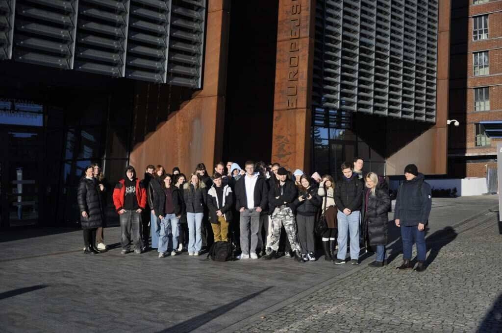 27 listopada 2025 r. czterdziestu uczniów naszej szkoły, w ramach nagrody za ich trud w ubiegłym roku szkolnym, wyjechało na wycieczkę do Gdańska. Uczniowie przebywali pod opieką pani Kamili Sobolewskiej - Milczarczyk, pana Sławomira Hryczaka i pani Aleksandry Motas. Był to wyjazd z programu Ministerstwa Edukacji Narodowej „Wyjście z klasą”, w pełni refundowany przez MEN. W programie wycieczki były warsztaty edukacyjne w Europejskim Centrum Solidarności w Gdańsku prowadzone przez pracowników Centrum oraz indywidualne zwiedzanie wystawy stałej ECS. Na terenie obiektu, w Bistro, wszyscy uczestnicy wycieczki zjedli pyszny obiad i nadal głodni wrażeń odwiedzili jeszcze jedną atrakcję – Gdański Jarmark Bożonarodzeniowy. Wszyscy świetnie się bawili, dopisały humory i pogoda. Wieczorem bezpiecznie wrócili do domów.