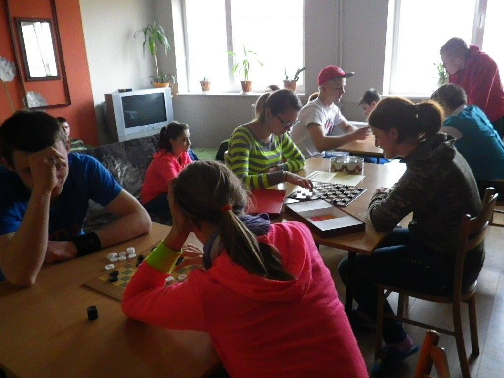 Dla mniej aktywnych fizycznie, ale lubiących zdrową rywalizację zorganizowano „zabawę z bierkami” oraz wprowadzono gry karciane i planszowe. Dużym powodzeniem cieszyła się gra w chińczyka.