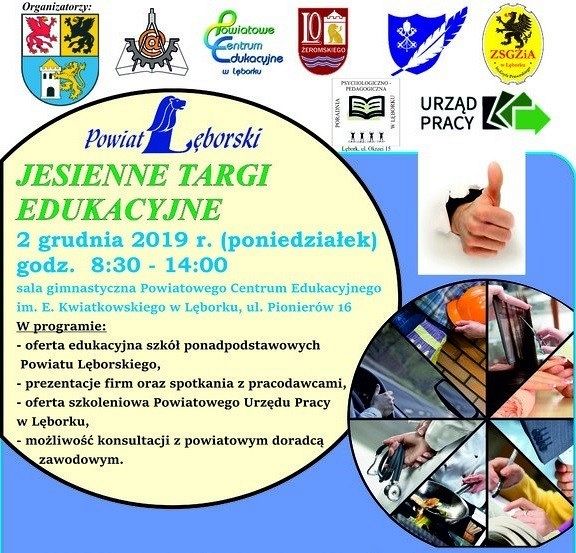 Już 2 grudnia 2019 roku (w poniedziałek) zapraszamy do Powiatowego Centrum Edukacyjnego w godz. 8:30 – 14:00 - na Jesienne Targi Edukacyjne – 2019!