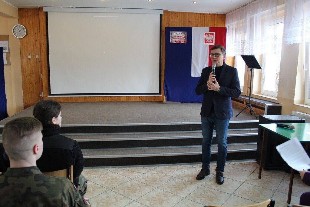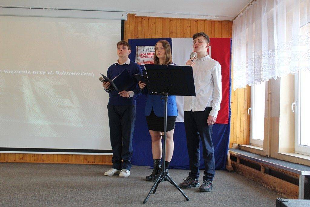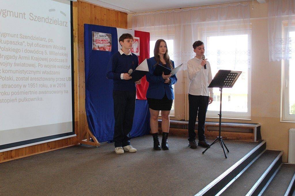 Żołnierze niezłomni - żołnierze wyklęci, najwierniejsi obrońcy Rzeczypospolitej, skazani na hańbę, a później na zapomnienie. Mordowani zdradziecko, zakopywani w bezimiennych mogiłach, nazywani "zaplutymi karłami reakcji..." Tak wielu spośród nas nic nie wie o ich historii... Aby przybliżyć sylwetki tych postaci, aby uczcić ich pamięć, dzisiaj w naszej szkolne odbył się apel poświęcony pamięci żołnierzy wyklętych. To lekcja historii, która ma sprawić, że pamięć o tych, którzy walczyli, wierzyli i się nie poddali, przetrwa. Akademia została przygotowana przez klasy: 3Tla i 3Tbe.